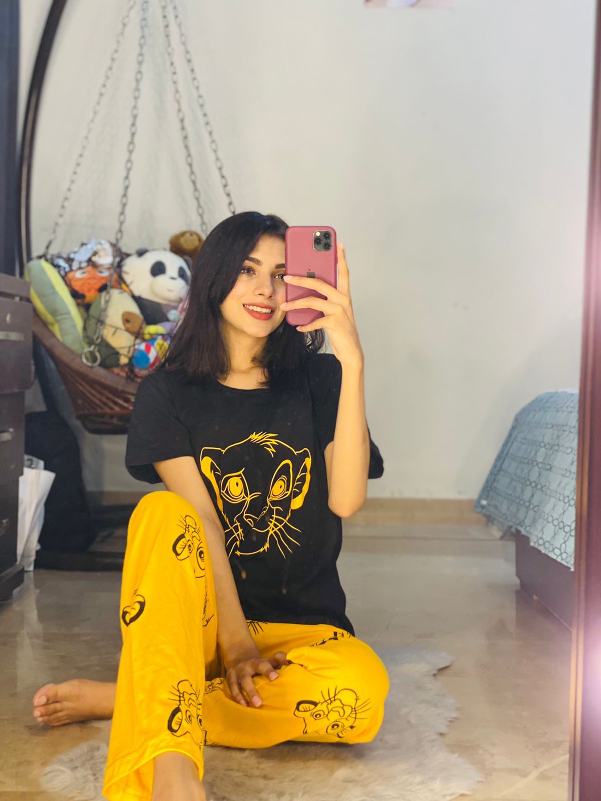 - Product Name :Black Lion With Yellow Lion Trouser Half Sleeves Night Suit