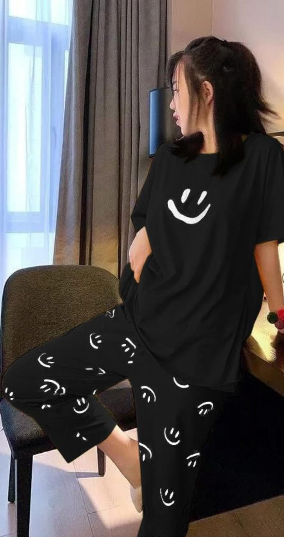 - Product Name : Black Smiley With Smile Trouser Half Sleeves Printed Trouser